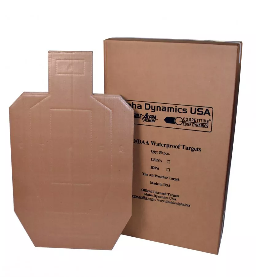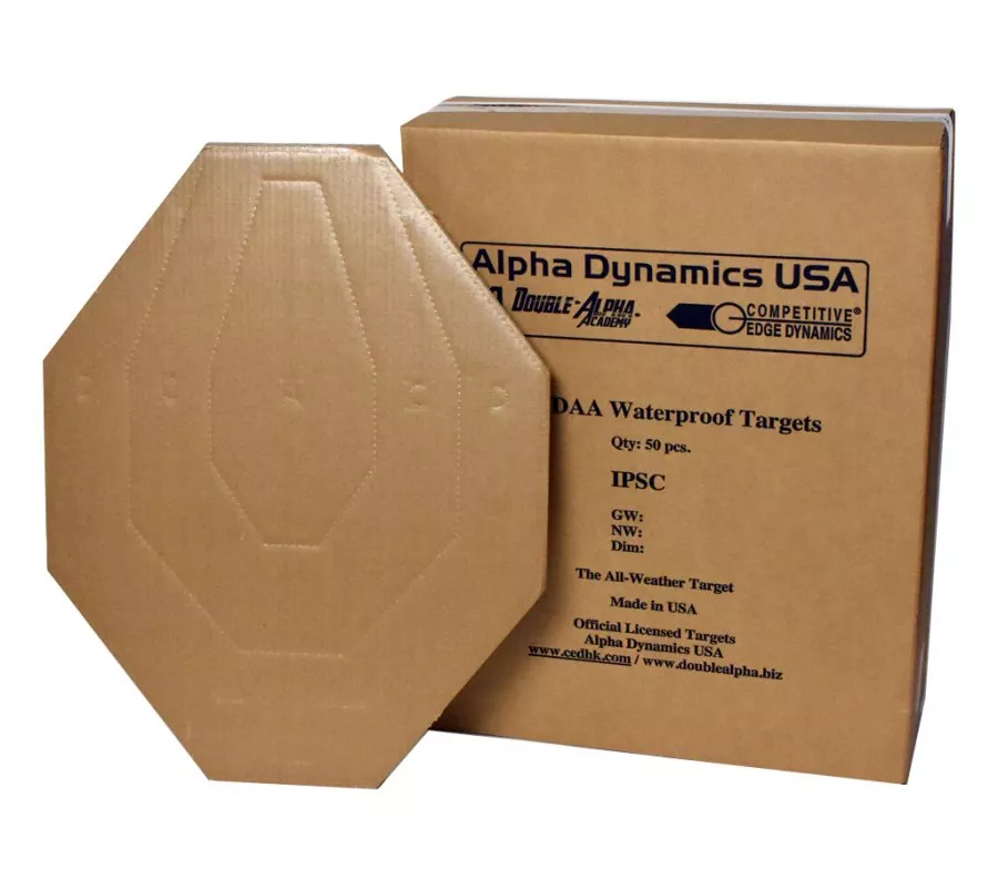 Die wasserfesten Zielscheiben von CED/DAA sind in den lizenzierten Ausführungen USPSA, IPSC Classic (jeweils mit weißer Rückseite) und IDPA erhältlich.