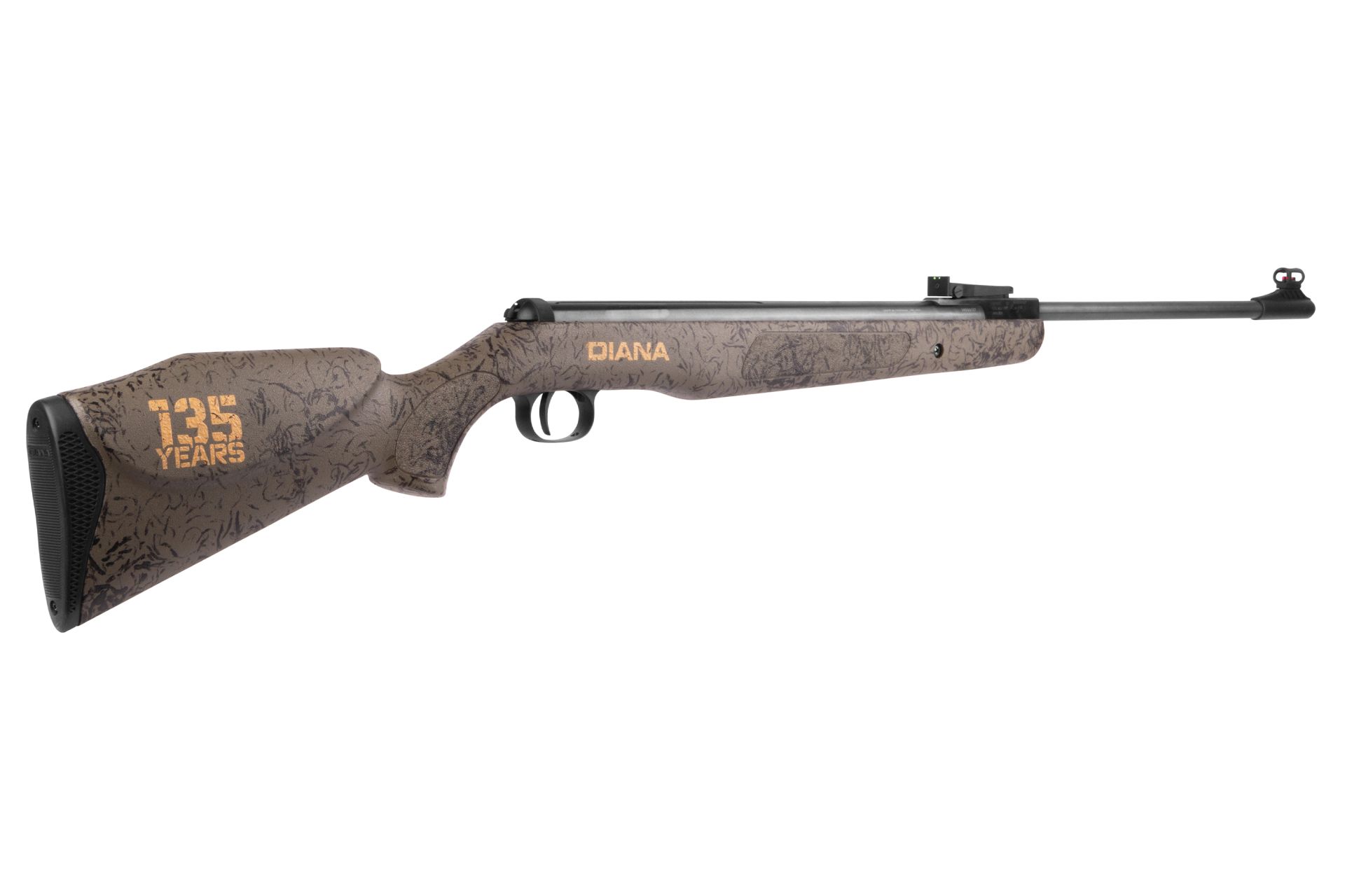 Die DIANA Panther 350 Magnum 135 Years Anniversary Edition kombiniert kompromisslose Leistung mit einem markanten Jubiläumsdesign. Ausgestattet mit einem speziell gestalteten Allwetter-Polymer-Schaft und einem „135 Jahre“-Jubiläumslogo, verbindet dieses Modell modernes Design mit Tradition. Jeder Schaft ist ein handbemaltes Unikat, was jedes Gewehr zu einem Einzelstück macht.