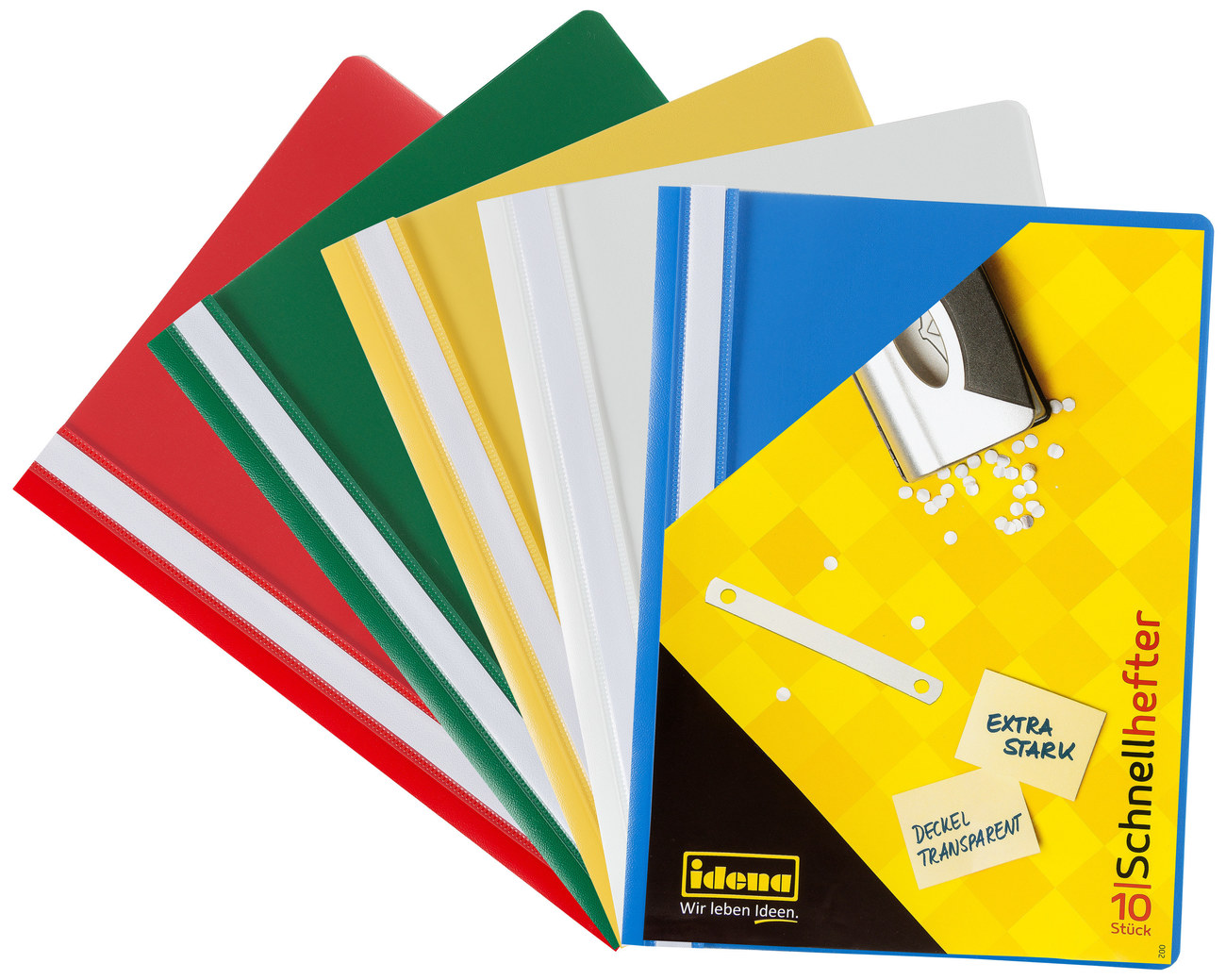 Beschreibung: Schnellhefter besitzen besonders für Schüler wichtige Eigenschaften. Sie sind leicht, der Inhalt ist durch das transparente Deckblatt gut sichtbar und sie lassen sich anhand der verschiedenen Farben leicht unterscheiden. Optimal geeignet für viele Unterrichtsfächer. Die Beschriftung der farbenfrohen Hefter kann auf dem herausziehbaren Streifen erfolgen. Die Schnellhefter im DIN A4 Format bestehen aus extra starker PP-Folie (Polypropylen) und sind sehr robust. Produktspezifikation: Die Packung enthält 10 Schnellhefter in den Farben: 2x grün, 2x weiß, 2x gelb, 2x blau, 2x rot. Größe: DIN A4