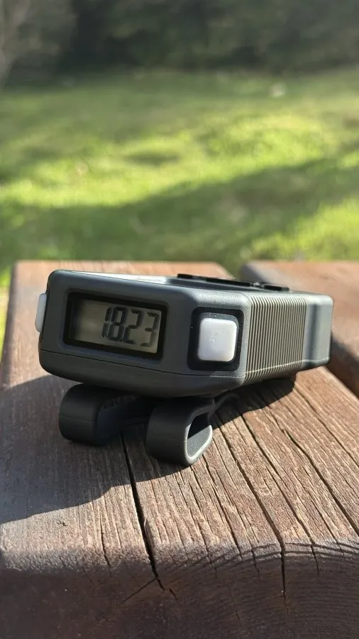 Das Gerät wird mit zwei CR123A-Batterien (nicht im Lieferumfang enthalten) betrieben und bietet je nach Nutzungsbedingungen eine Betriebsdauer von 25–50 Stunden. Der Stromverbrauch steigt bei intensiver Nutzung der Display-Hintergrundbeleuchtung, der Taschenlampe, der beleuchteten Tasten oder der drahtlosen Verbindung. Das Double-Alpha EDGE ist vollständig kompatibel mit wiederaufladbaren CR123A-Batterien (achten Sie auf eine Länge von ca. 34,5 mm, da einige länger sind). Diese sind bei großen Händlern wie Amazon erhältlich.