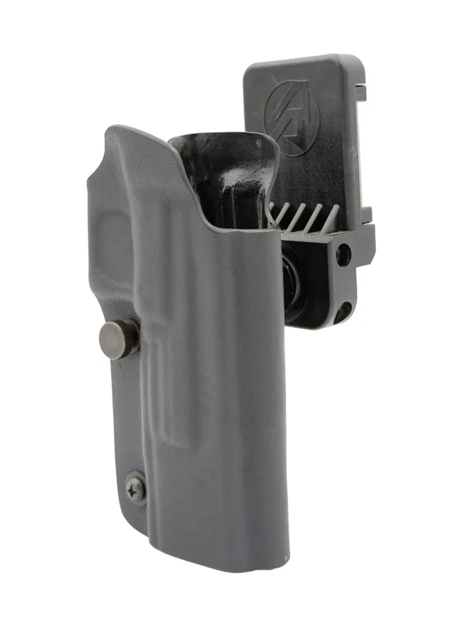 Wir haben dieses Teil von Kunststoff auf Aluminium aufgerüstet und die Art und Weise, wie die Höhenverstellung und der vertikale Verriegelungsmechanismus erreicht werden, neu gestaltet. Der PDR PRO-II hat jetzt eine Einstellschraube in der Kugel selbst, die von ihrer Innenseite aus zugänglich ist und es Ihnen ermöglicht, die Höhe auf jede Position einzustellen, nicht nur in den zuvor festgelegten 10-mm-Schritten. Auch diese Höhenverstellung kann jetzt ohne Demontage des Holsters und ohne Verlust anderer Einstellungen erreicht werden.