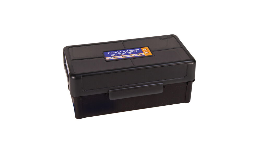Die Frankford Arsenal® Scharnierdeckel-Munitionskiste® besteht aus einem hochdichten Polymermaterial, das einen unübertroffenen Schutz für Ihre Munition bietet. Geben Sie Ihrer Munition den Schutz, den sie verdient.