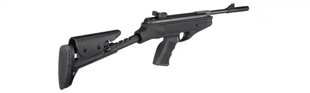 Die MP7 repräsentiert eine hochentwickelte Serie an leistungsoptimierten Maschinenpistolen und schließt die Lücke zwischen Sturmgewehr und bisherigen Maschinenpistolen. Auf den ersten Blick vermutet niemand eine klassische Knicklauf-Druckluftwaffe hinter diesem Design, obwohl es auch in diesem Bereich mächtig punktet. Ähnlich wie ihr Original siedelt sich diese Airgun zwischen den Gewehren und Pistolen an. Der Vorderschaft und der ausziehbare Schaft garantieren ein sicheres Handling und eine deutlich gesteigerte Präzision gegenüber einer herkömmlichen Pistole, während sie deren leichte und kompakte Bauform behält. Die Schalldämpfer-Attrappe erleichtert das Spannen der kraftvollen Feder, die der MP7 eine Energie bis 7,5 Joule verleiht. Stilecht bietet die MP7 über Picatinny-Schienen zahllose Montagemöglichkeiten für Optiken und weiteres Zubehör. Klassische Knicklauf-Druckluftwaffe im modernen MP7-Design Schalldämpfer-Attrappe für leichteres Spannen Gezogener Lauf Abzugssicherung Picatinny-Schienen Schubschaft Ohne mechanische Visierung Energiestufe (E₀): < 7,5 J Geschossgeschwindigkeit (V₀): 141 m/s (463 fps) Kaliber: 4,5 mm (.177) Diabolo Antrieb: Federdruck Sicherung: Druckknopfsicherung Länge: 563 mm Gewicht: 1920 g