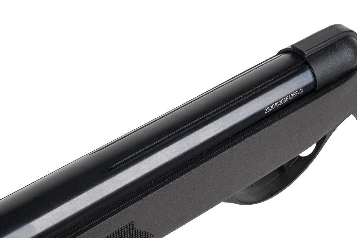 Kunststoff - Laufmantel schützt vor Handschweiß und erhöht den Grip höhen - und seitenverstellbare Kimme Energiestufe (E₀): < 7,5 J Geschossgeschwindigkeit (V₀): 175 m/s (574 fps) Kaliber: 4,5 mm (.177) Diabolo Antrieb: Federdruck Sicherung: Druckknopfsicherung Länge: 990 mm Gewicht: 2355 g