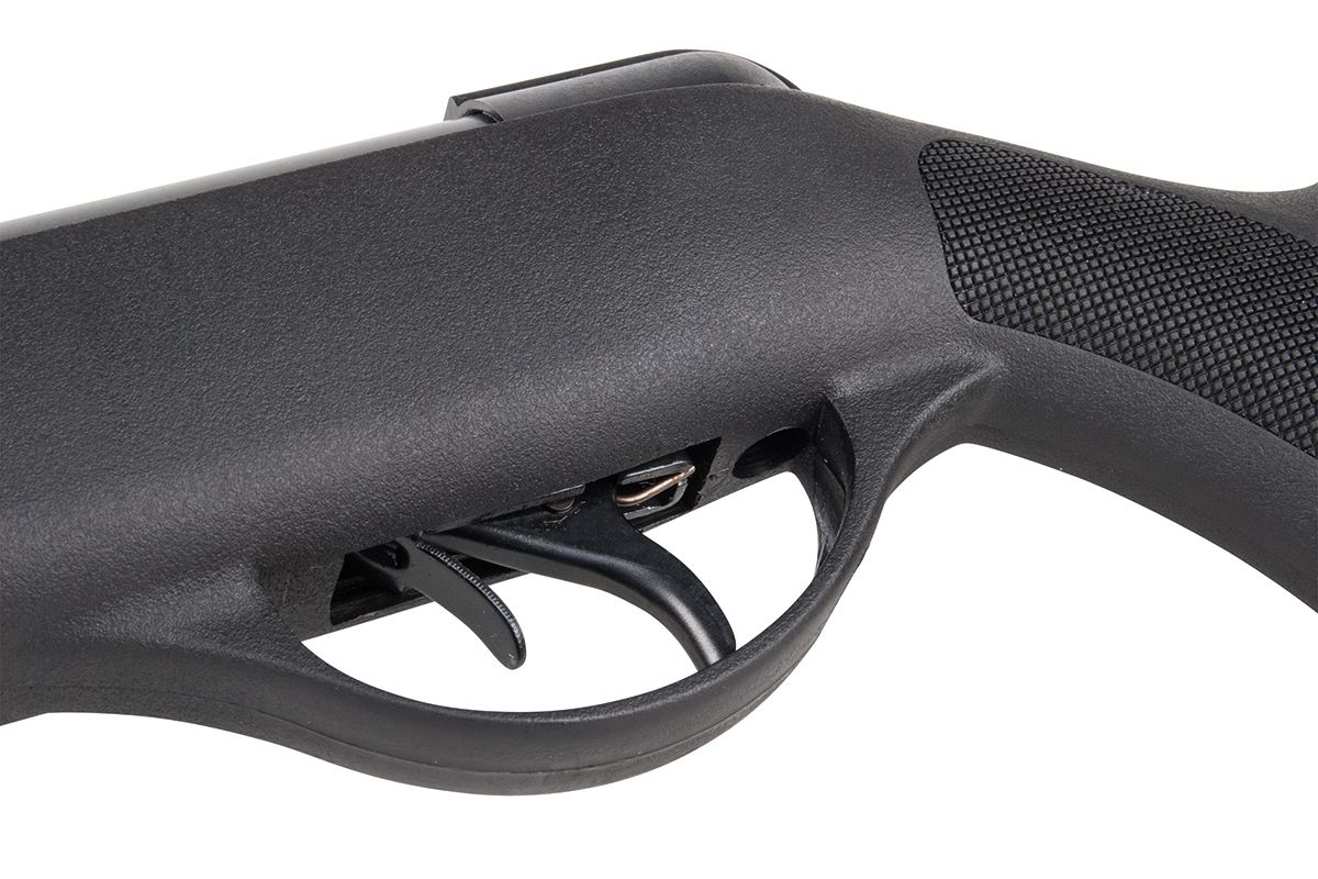 Out of the Box bietet das Hämmerli Black Force 400 Combo ein leichtes und führiges Federdruck-Luftgewehr und eine hochwertige Zieloptik mit 4-facher Vergrößerung. Aufgrund des geringen Gewichtes und des widerstandsfähigen Polymerschafts eignet es sich besonders für den Einsatz im Freien und spricht Einsteiger sowie ambitionierte Schützen gleichermaßen an. Der gezogene Knicklauf führt das eingesetzte 4,5 mm (.177) Diabolo präzise und ermöglicht eine stabile Flugbahn. Neben dem mitgelieferten 4x32 Zielfernrohr akzeptiert die 11 mm-Prismenschiene optionale Optiken. Alternativ bietet das Black Force 400 Combo eine höhen- und seitenverstellbare Kimme sowie ein Korn mit Fibereinsatz. Eine automatische Druckknopfsicherung, Riemenösen, eine gummierte Schaftkappe und strukturierte Griffflächen runden das Komplettpaket ab. Energiestufe (E₀): < 7,5 J Geschossgeschwindigkeit (V₀): 170 m/s (558 fps) Kaliber: 4,5 mm (.177) Diabolo Antrieb: Federdruck Abzug: Druckpunktabzug Sicherung: Druckknopfsicherung Länge: 1110 mm Gewicht: 2785 gDas Luftgewehr wird in einem Karton inkl. einem Zielefernrohr ausgeliefert.