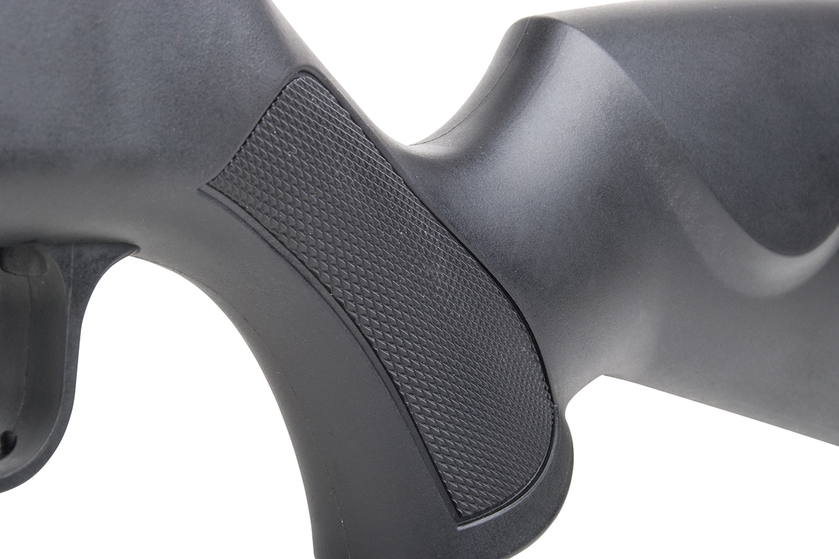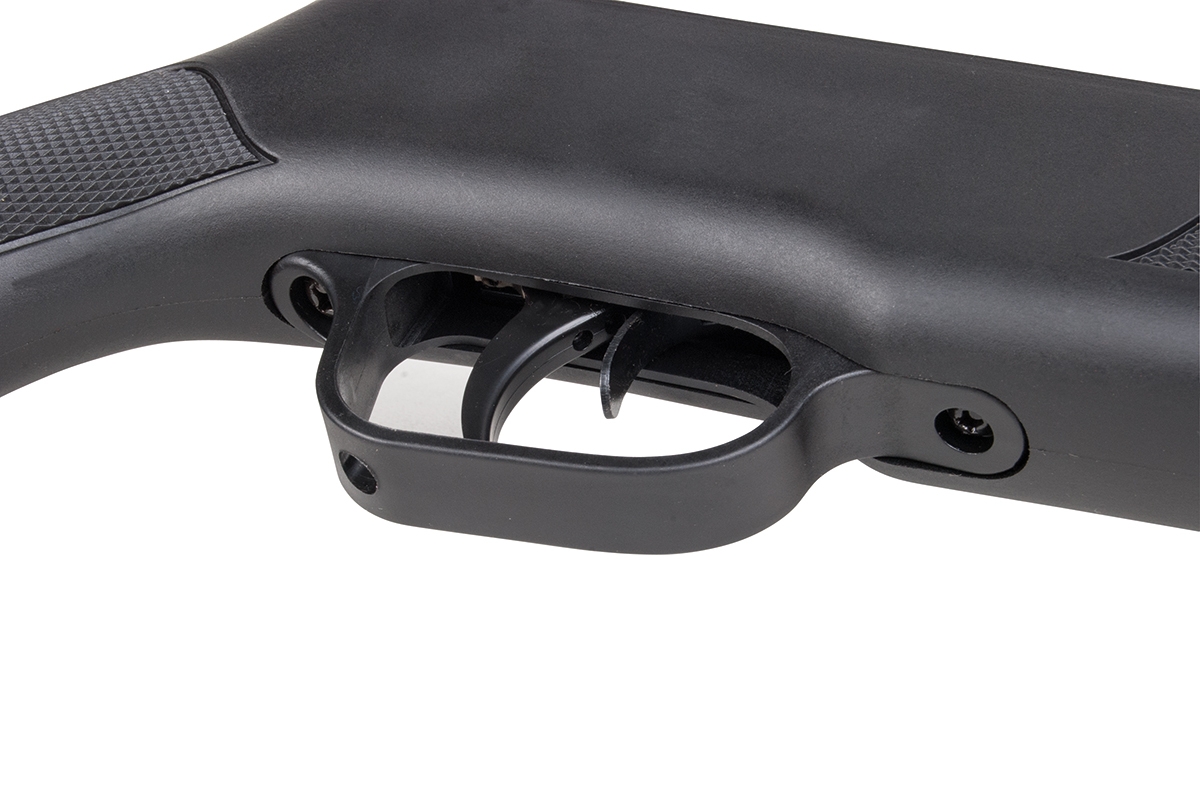 Das GSG SR1000S ist ein klassisches Knicklauf-Gewehr, ideal für Einsteiger. Das recht hohe Gewicht vermittelt trotz des Kunststoffschaftes ein hochwertiges Empfinden. Das Modell verfügt über eine manuelle Sicherung, eine einstellbare hintere Visierung, einen integrierten Silencer, Fischhautmuster am Griffstück, eine gefräste 11 mm-Prismenschiene und eine gummierte Schaftkappe. Das Modell ist für Rechts- und Linkshänder geeignet.