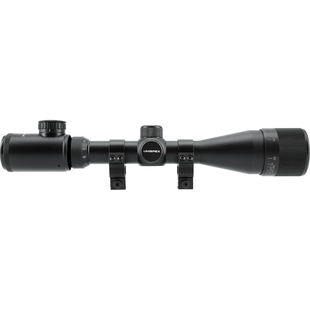 Umarex Rifle Scope 4-12 x 50. TacDot-Absehen, mittig rot beleuchtet. 7 Helligkeitsstufen. Lieferung mit Montageringen für 11 mm-Schiene. Tubusdurchmesser 1“ (30 mm). Einstellbarer Parallaxeausgleich (10 m - ∞). Ø Objektiv: 50 mm Ø Tubus: 30 mm Beleuchtung: rot Beleuchtungsstufen: 7 Absehen: TacDot Parallaxefrei auf: 10 m - ∞ Schussfestigkeit: .223 Rem Länge: 341 mm Gewicht: 780 gDas Zielfernrohr wird in einem Karton inkl. Montageringe für eine 11 mm Schiene ausgeliefert