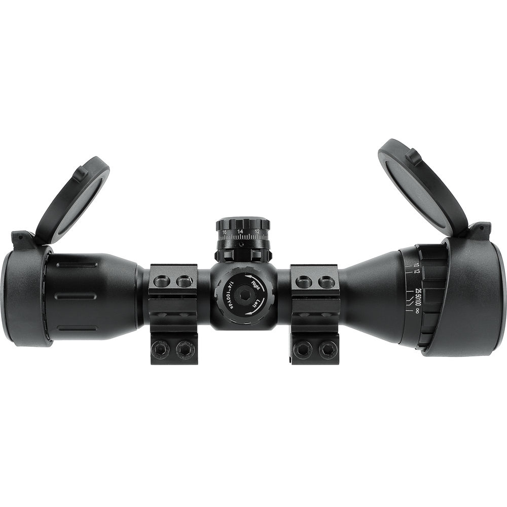 mit High-Power-Montage, unbeleuchtet Ø Objektiv: 32 mm Ø Tubus: 25,4 mm Beleuchtung: nein Parallaxefrei auf: 20 m Montage: 11 mm Länge: 295 mm Gewicht: 351 gDas Zielfernrohr wird in einem Karton inkl. Montageringe für eine 11mm Schiene ausgeliefert.