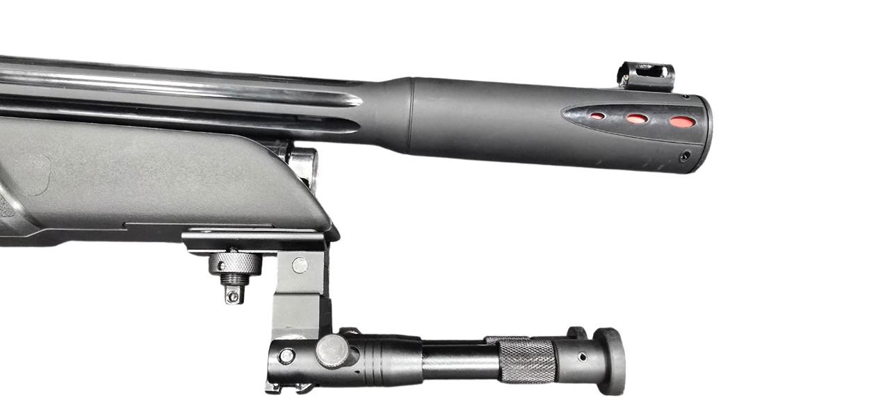 Entwickelt und gefertigt in Spanien, steht das Arrow für ansprechendes Design zu einem unschlagbaren Preis-Leistungs-Verhältnis. Der glasfaserverstärkte Kunststoffschaft liegt gut in der Hand und die Bedienung des Geradezugrepetierers ist sowohl für Rechts- als auch Linkshänder ohne Probleme möglich. Den Spannhebel leicht nach unten drücken, zu sich ziehen und nach vorne schieben. Die umfangreichen Ausstattungsmerkmale des Arrows, wie Fusion Schalldämpfer oder CAT-Abzug, lassen keine Wünsche offen. Mit der offenen Visierung kann problemlos auch ohne Zielfernrohr geschossen werden und der maximale Fülldruck der Kartusche von 232 Bar lässt das Befüllen der Kartusche mit einer Handpumpe zu.