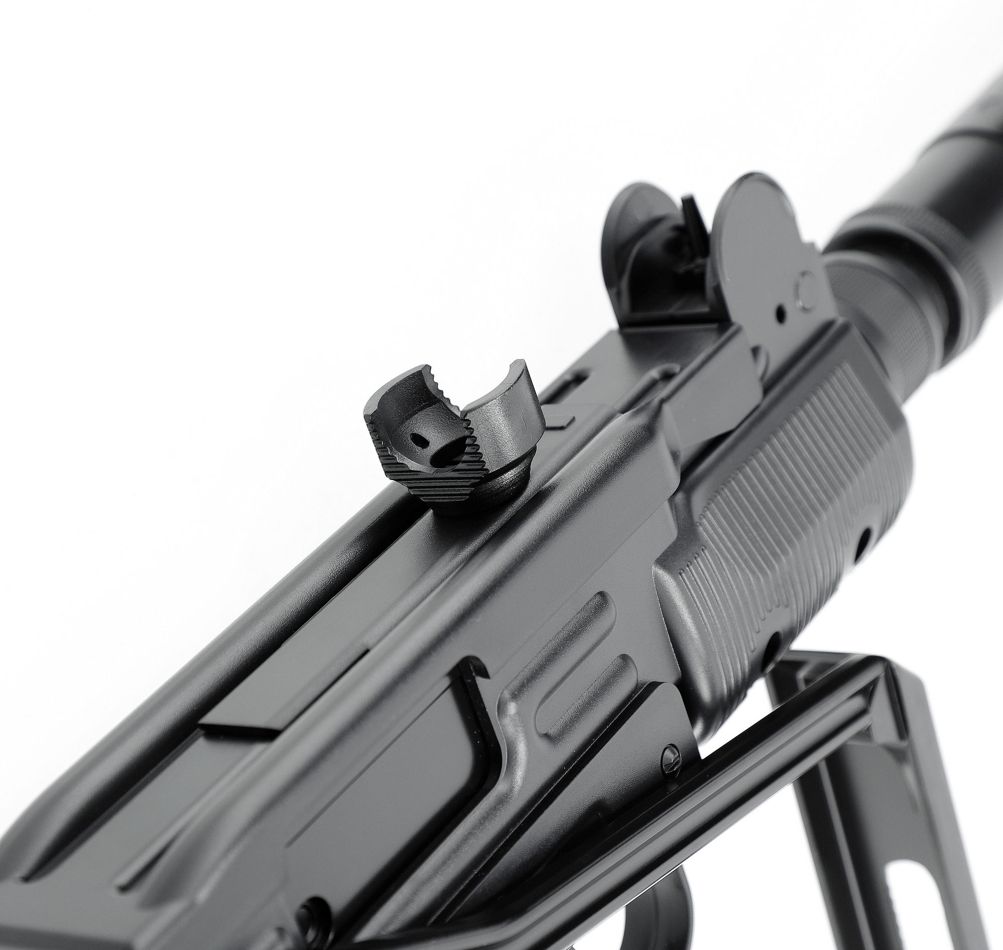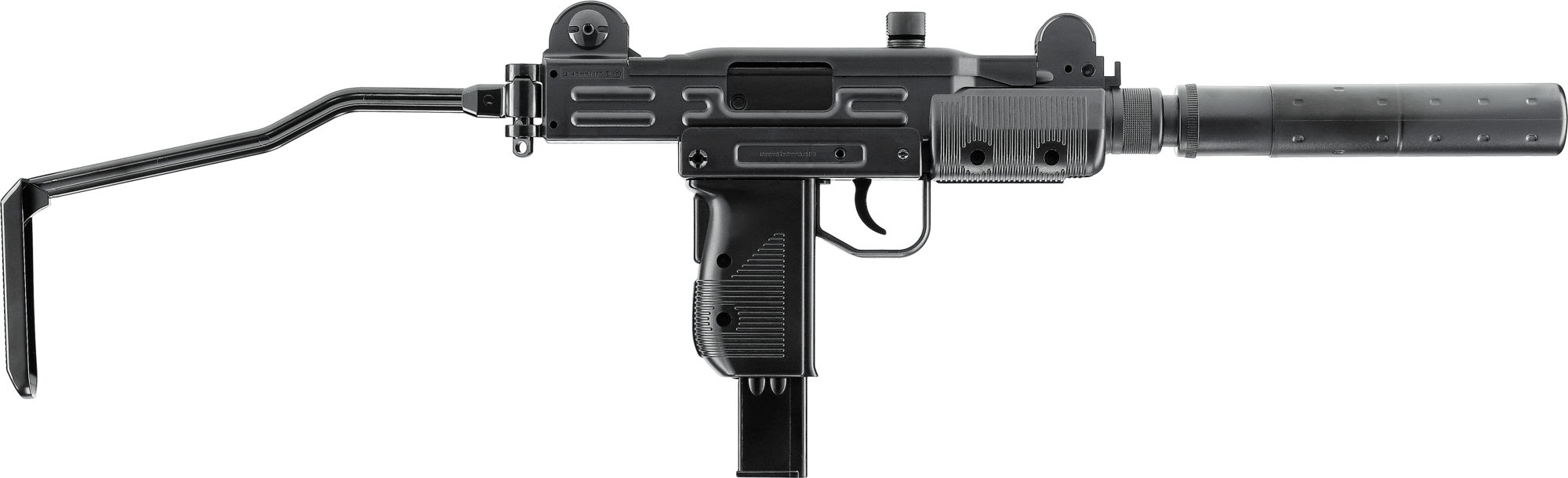 Zunächst nur israelischen Spezialeinheiten vorbehalten, etablierte sich die Mini UZI nach ihrer Markteinführung schnell bei Militär- und Polizeieinheiten in der ganzen Welt. Mit der vorliegenden CO₂-Variante der Mini UZI mit Blowback, Klappschaft und abnehmbarer Schalldämpferatrappe bietet Umarex endlich ein Modell für Stahlrundkugeln im Kaliber 4,5 mm. Diese Geschossart hat sich in den letzten Jahren immer mehr durchgesetzt und erfreut sich inzwischen einer großen Fangemeinde.