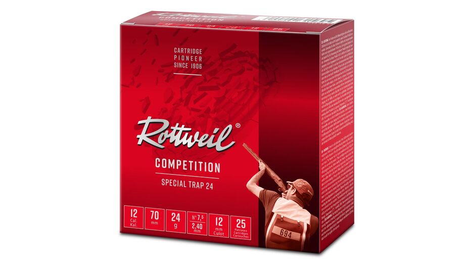 Rottweil bietet in der Competition Line ein breites Sortiment an Sportschrotpatronen. Ob Trap, Skeet, Jagdliches Schießen oder auf dem Jagdparcours: Schießsport soll Spaß machen und Erfolg bringen. Dabei kommt es auf die richtige Munition an. Alle Rottweil Sportschrotpatronen sind speziell auf die unterschiedlichen Schießdisziplinen abgestimmt und schaffen so beste Voraussetzungen für konstant gute Leistungen. Das Produktprogramm umfasst rasante Varianten für den erfahrenen Schützen, Streuversionen für kurze Distanzen sowie die vielfältige Special-Serie für den Allrounder. Rottweil Competition Line auf einen Blick: Schrotpatronen für Trap, Skeet, jagdliches Schießen Bis zu 15 m/s schneller, dank genau abgestimmter Pulverdosierung und leichtgängigem Schrotbecher 10% mehr Energieabgabe dank härterer, vernickelter Schrote bis zu 20% höhere Schussentfernung reduzierter Rückstoß, dank eines speziellen, absorbierenden Schrotbechers und Gordon System Hülsenboden Schrotstärke 2,4 mm Schrotnummer 7,5 Kaliber 12/70 Höhe der Bodenkappe 12 mm ZwischenmittelBecherpfropfen Mündungsgeschwindigkeit 390 m/s Gewicht der Vorlage 28 g Inhalt Einzelverpackung 25 Kompatibel mit Kaliber12/70, 12/76 Aufbau Rottweil Special Trap Eine preisgünstige blaue PE-Kunststoffhülse Erzielt ein gutes Trefferbild dank Schrotbecher aus Kunststoff Schonung des Laufs durch erosionssichere SINOXID®-Zündung Besitzt eine preiswerte 10 mm hohe Metall-Bodenkappe 1.4 Achtung. Gefahr durch Feuer oder Splitter, Spreng- und Wurfstücke. Von Hitze, heißen Oberflächen, Funken, offenen Flammen und anderen Zündquellenarten fernhalten. Nicht rauchen. ACHTUNG: Zum Kauf dieses Produkts ist die Vorlage der Erwerbsberechtigung erforderlich !!!