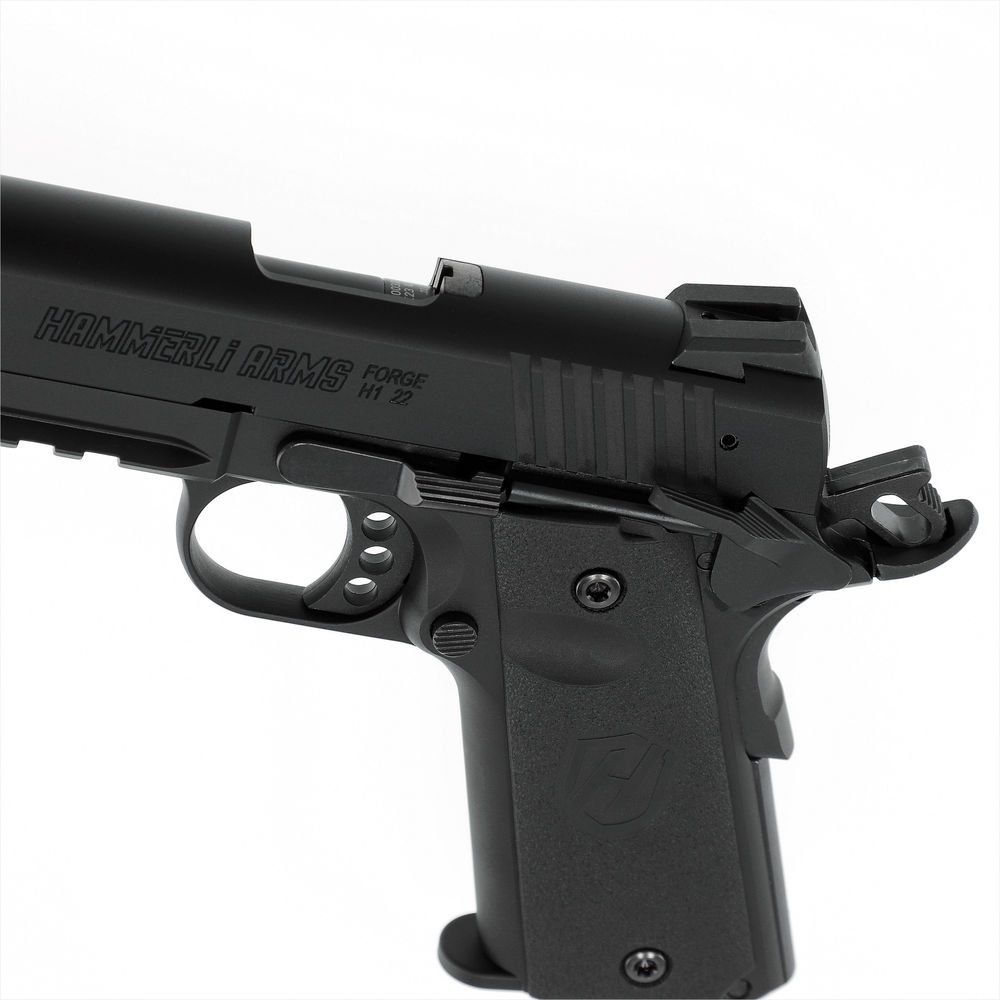 Die Hammerli Arms Forge H1 – eine Pistole, die so zeitlos wie das ikonische 1911-Design selbst kompromisslose Zuverlässigkeit verkörpert. Diese präzise gefertigte Pistole im Kaliber .22 LR kombiniert klassische und moderne Features und bewährt sich bei jedem Schuss, selbst unter anspruchsvollsten Bedingungen.