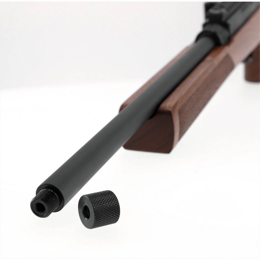 Das Gehäuse ist aus T7075 Aluminium CNC-gefräst und mit einer integralen Picatinny-Schiene ausgestattet, die jede Art von Optik trägt. Auch die Abzugseinheit hat bei der Konzeption der Force eine entscheidende Rolle gespielt. Ausgestattet mit einer Abzugzüngelsicherung und einer werkzeuglos umsteckbaren Druckknopfsicherung ist er als Drop-In-Modul ausgeführt und kompatibel zur Ruger® 10/22, so dass der Schütze hier auf ein umfangreiches Sortiment an Tuningabzügen vom Zubehörmarkt zurückgreifen kann. Das Mündungsgewinde (1/2“-28 UNEF) mit Überwurfmutter ermöglicht den Einsatz eines Schalldämpfers oder anderer Mündungsaufsätze.