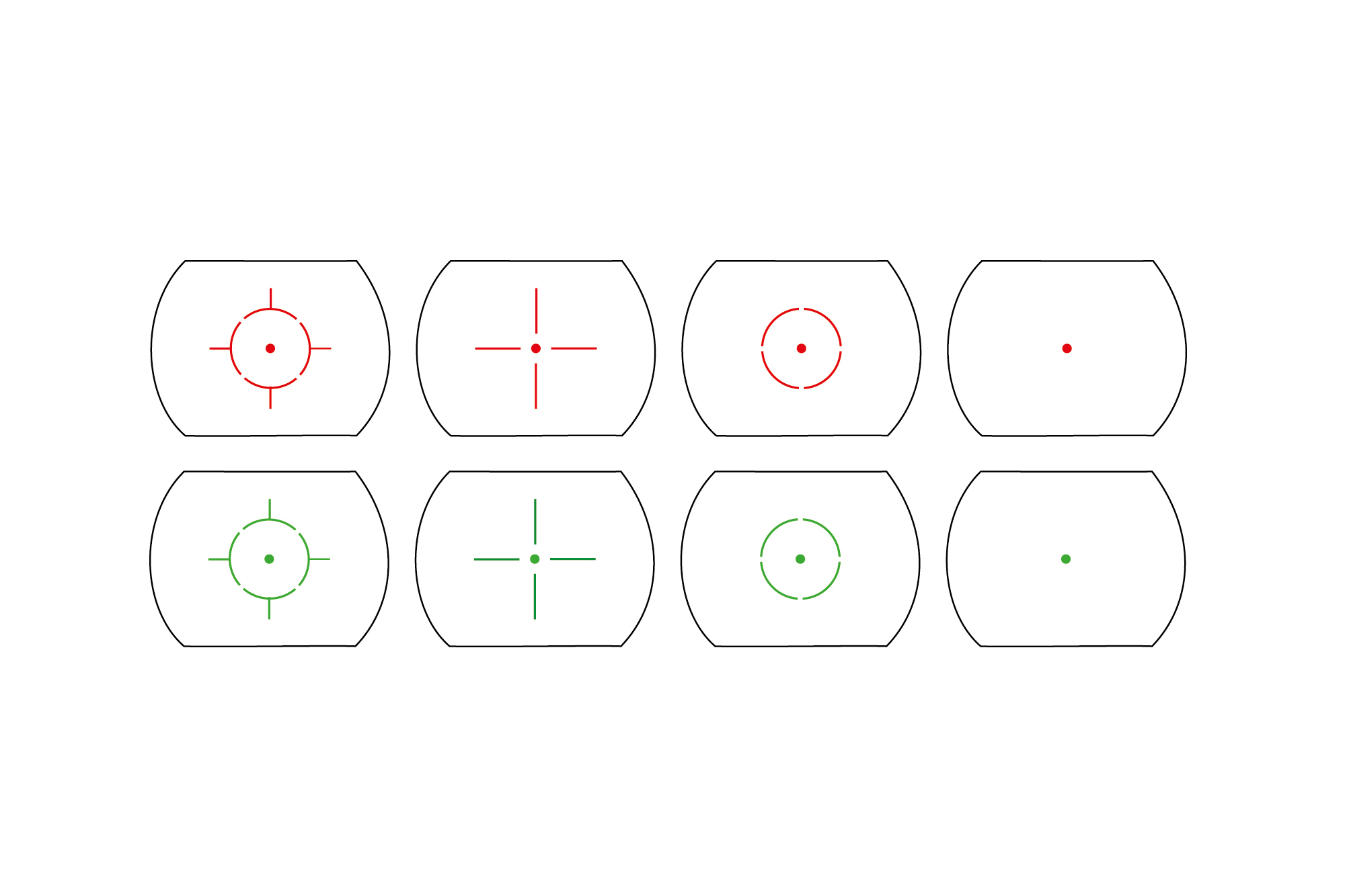 Großes Sichtfeld und unbegrenzter Augenabstand Klares und scharfes 4,0-MOA-Punktvisier Reflexionsfreie Hightech-Smaragdbeschichtung Roter oder grüner Punkt passt sich jedem Umgebungshintergrund an Optimale Höhe für die Ko-Witing-Funktion mit Kimme und Korn Inklusive Smart-Adapter und direkt abnehmbarer taktischer Montage mit innovativer Schnellmontageplatte für die Verwendung auf jeder Picatinny-Schiene Beleuchtungsregler mit variablen Helligkeitsstufen ermöglicht eine unauffällige und stufenlose Feineinstellung Zielen und sofortige Zielerfassung für verbesserte Schusspräzision und -leistung Das vielseitigste Punktvisier für eine Vielzahl von Pistolen, Schrotflinten und Gewehren Das Zielpunktabsehen besteht aus einem einzelnen schwebenden Punkt in der Mitte als Zielpunkt mit der geringsten visuellen Ablenkung. Es wird üblicherweise für schnelles Zielen mit geringeren Anforderungen an höchste Präzision verwendet. Der Schütze zielt, indem er den Punkt auf das Ziel richtet. Bei einem Reflexpunktvisier mit Lichtreflexion verfügt das Visier in der Regel über keine Vergrößerung und einen unbegrenzten Augenabstand. Der Punkt ist ein reflektiertes Bild der Lichtquelle mit typischen Eigenschaften jeder Lichtreflexion, einschließlich leichter Streuung und Unschärfe. Batterieeinschub: seitlich Batterietyp: CR1620 3V Helligkeitsmodus: Manuell Helligkeitseinstellung: Stufenlos Klickwert: 1/2 MOA Augenabstand: Unendlich Sichtfeld (lineares Sichtfeld bei 100 m): 70 Beleuchtungsumschalter: Analog Vergrößerung: 1-fach Material: Aluminium Parallaxe: Unendlich Patent: US PAT. 8397421 Schnell abnehmbar: Nein Absehen: Einzelpunkt Absehenfarbe: Rot und Grün Gewicht: 5,6t Höhe 2,24 Länge 3,93 Länge (mm) 99,822 Objektivdurchmesser 26 mm Rohrdurchmesser 30 mm Breite 2,59