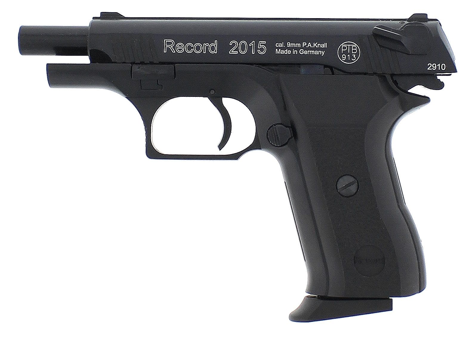 Die kompakte Schreckschusspistole Record 2015 verfügt über ein 6 Schuss Magazin, einen Stahlstoßboden, eine Schlagstücksicherung und einen außenliegenden Hahn. Bedingt durch die rauhen Kunststoffgriffschalen und die kurze Bauweise liegt die Pistole besonders gut in der Hand. Mit dem im Lieferumfang enthaltenen Abschussbecher, lassen sich in Verbindung mit Platzpatronen, 15 mm Feuerwerksmunition verschießen.