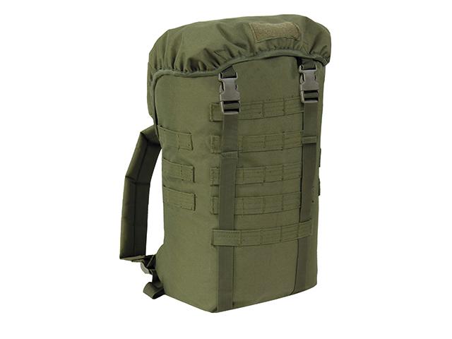 Der Rucksack aus robustem 600D Polyester mit PVC Beschichtung verfügt über ein großes Hauptfach, ein verdecktes Fach im Deckel, einen abnehmbaren Hüftgurt und eine Klettaufnahmen für Abzeichen oder Patches.