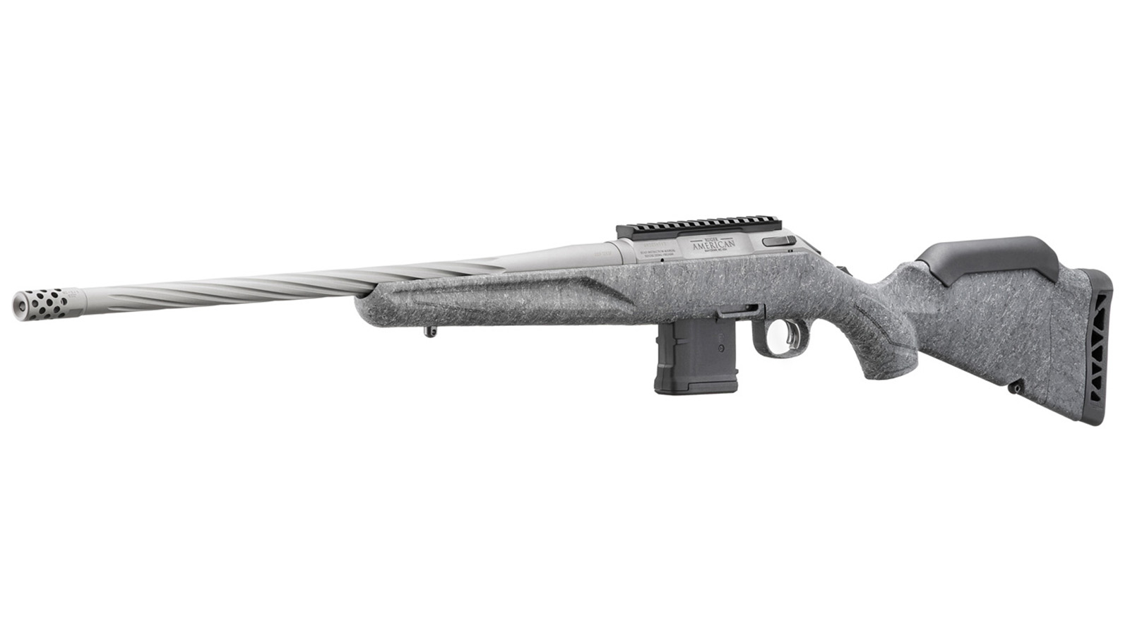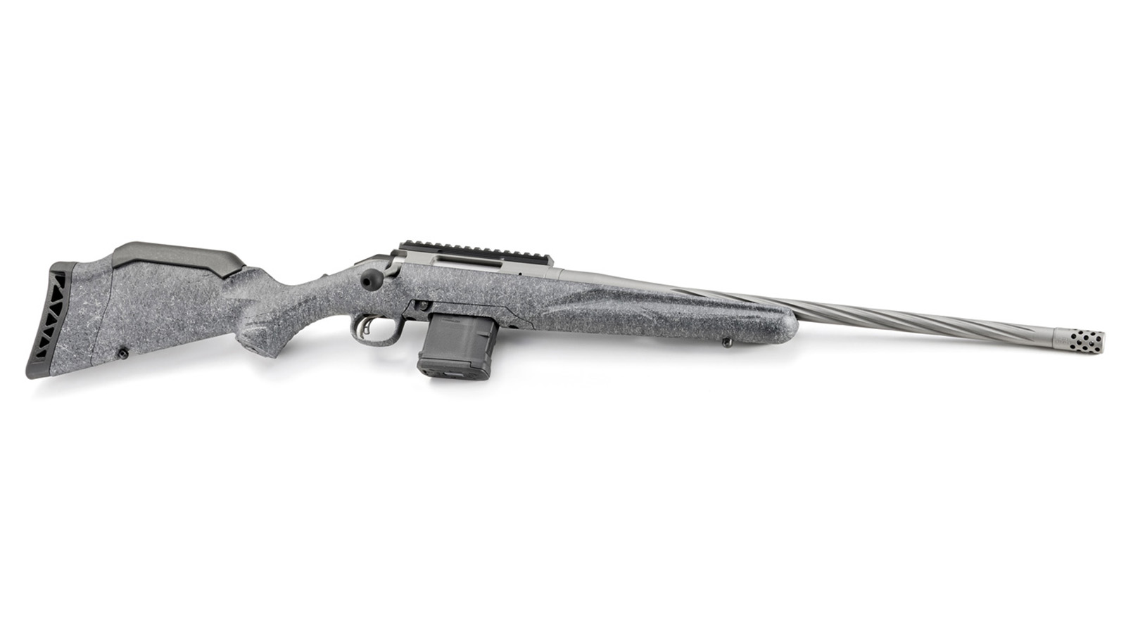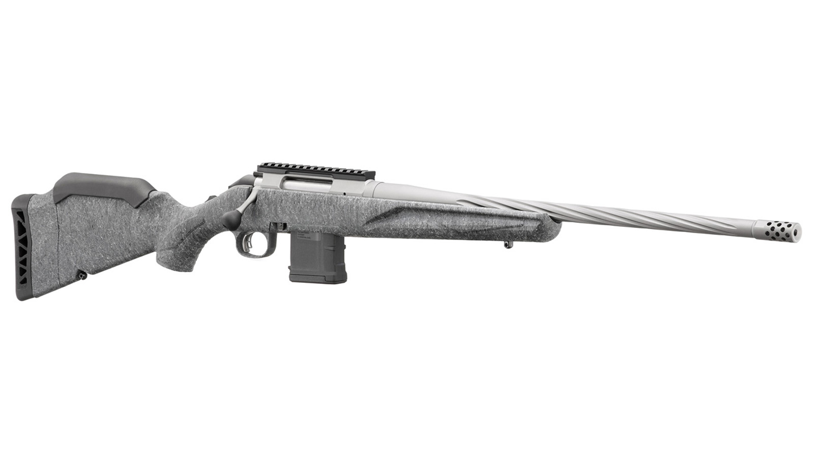 Ruger American Rifle Generation II - Die Standard-Modelle sind mit einem Gun Metal Gray Cerakote beschichteten Lauf und einem dunkelgrauen gesprenkelten Schaft ausgestattet. Seine Form und Struktur sorgen für eine hervorragende Griffigkeit und Kontrolle im Einsatz. Der kaltgeschmiedete 20-Zoll-Semi-Weight Lauf ist spiralförmig geflutet und soll so die Balance des Gewehrs verbessern, ohne die Steifigkeit oder Präzision zu beeinträchtigen.
