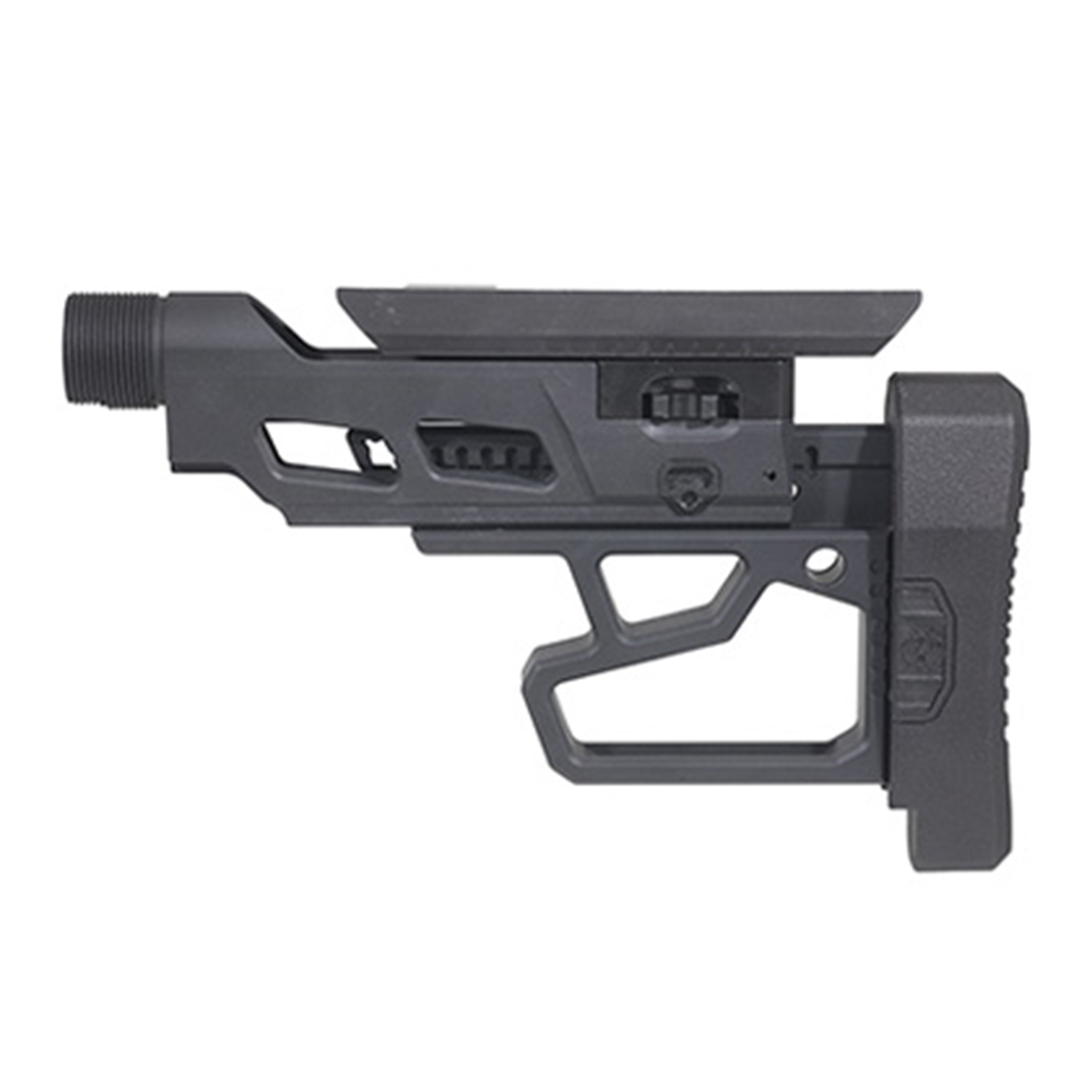 Der Hinterschaft ist kompatibel mit allen früheren Generationen der Ruger Precision Rifle sowie mit anderen Waffen mit MIL-SPEC Aufnahmen. Er besteht aus Stahl, Aluminium und Nylon mit Hartschicht-Eloxal- und Nitrid-Beschichtungen für Stärke und Haltbarkeit, wiegt 817 g und hat weder scharfe Kanten noch Ecken, was den Komfort erhöht.