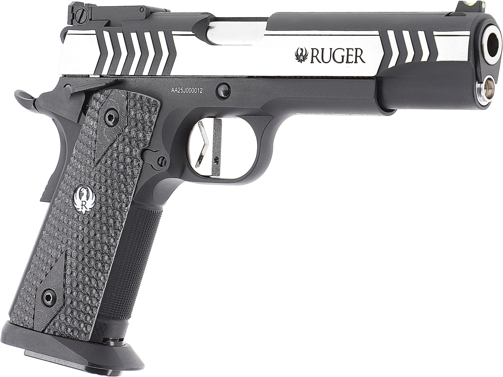 Als Vollblut-Sportler präsentiert sich die Ruger SR1911 mit ihrem markanten Two-Tone-Finish, das auf den ersten Blick die Besonderheit dieser Airsoft-Pistole betont. Eingerichtet für das Kaliber 6 mm BB bietet die SR1911 Competition einen Split Commander-Hammer, ein durchbrochenes gerades Competition-Abzugszüngel und einen Jet-Funnel für reibungslose schnelle Magazinwechsel. Die Vollmetallwaffe mit ihrem starken Blowback liegt durch die Griffschalen mit Piranha-Fräsung perfekt in der Hand, und die klassische Kombination aus Daumensicherung und Beavertail-Sicherung gewährleistet maximale Bediensicherheit.