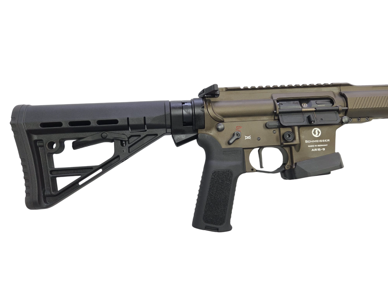 Kategorie: Langwaffen - SelbstladebüchsenKaliber: 9mm LugerZustand: neuBeschreibungAufgrund vielfacher Nachfragen nach einem verlässlichen AR15 9mm System, freuen wir uns Ihnen nun, nach langer Entwicklungszeit unsere Schmeisser AR15-9 Produktreihe präsentieren zu dürfen. Die neue Schmeisser AR15-9 ist komplett beidseitig bedienbar, des Weiteren wurden die Zuführung, sowie der Masseverschluss optimiert. Egal für welche Anforderungen, statisch oder dynamisch, mit der Schmeisser AR15-9 haben Sie die ideale Waffe in der Hand.Jetzt NEU auch in der sportlichen Konfiguration (BKA Bescheid) mit Schubschaft und NoRec Kompensator.Art: SelbstladebüchseKaliber 9×19Lauflänge: 267 mm / Drall: 1:10Gesamtlänge: 693 mm eingeschoben, 769 mm ausgezogenGewicht: 3.040 gSicherung: beidseitige 45° Sicherung.Farbe: Schwarz/Burnt Bronze/ OD Green LieferumfangWaffenkoffer inkl. ZahlenschlossReinigungsset inkl. BürsteBedienungsanleitung10 Schuss Magazin ACHTUNG: Zum Kauf dieses Produkts ist die Vorlage der Erwerbsberechtigung erforderlich !!!