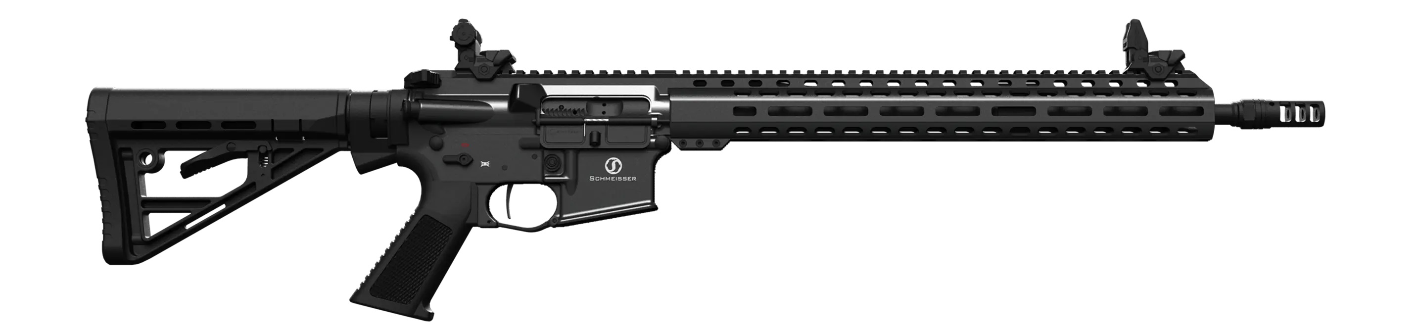 Die Schmeisser AR15 M5F 16,75″ ist eine universelle SL-Büchse für Jagd und Sicherheit mit freischwingendem 16,75″ Lauf. Diese Waffe hat einen freischwingenden Lauf mit No Flash Mündungsfeuerdämpfer einen schlanken M-Lok-Vorderschaft und einen einstellbarer Gasblock Der Two-Stage Trigger garantiert eine klar definierte trockene Schußauslösung Sowohl Sicherung,Magazinauslöser, Durchladehebel als auch Verschlussfang sind beidseitig ausgelegt Die Solid-Verstärkung am Lower erhöht die Stabilitität um ein Vielfaches gegenüber herkömmlichen AR15 Auslieferung erfolgt serienmäßig mit 10 Schuss Magazin und Flip-up Visierung. System: Halbautomatisches direktes Gassystem Kaliber: .223 Rem. Gewicht: 3.550 Gramm Länge: 87,5 cm eingeschoben, 95 cm ausgezogen Lauf: 16,75"/42,5 cm, Heavy Barrel brüniert Patronenlager: .223 Rem./ 5.56 NATO Drall: 1/9 Knopfgezogen Mündungs-feuerdämpfer: NoFlash, Stahl, A2/M4 nach Mil-Spec Gewinde: 1/2x28 UNEF-2A Verschluss: Semi-Auto Verschlussträger, phosphatiert und teilverchromt Oberes Gehäuse: Nach Mil-Spec aus 7075 T6 Aluminium geschmiedet inkl. Picatinny-Profil, harteloxiert Durchladehebel: Beidseitig bedienbar, 6082 T6 Aluminium Handschutz: Freischwingend mit Stahlgewindeeinsätzen (HELICOIL®). 31 cm Länge, “Slim-Line” Profil, Picatinny-Schiene oben, dreiseitige M-Lok Haltepunkte, harteloxiert Visierung: Verstellbares Flip-Up Kunststoffvisier Korn: Verstellbares Flip-Up Kunststoffvisier Unteres Gehäuse: nach Mil-Spec aus 7075 T6 Aluminium geschmiedet, harteloxiert Schaft: 7 Positionen Hinterschaft Buffer: Standard carbine buffer und Feder Abzug: Druckpunktabzug, Abzugsgewicht 2.400 Gramm (1.500/900 Gramm) Sicherung: Beidseitige Flügelsicherung Griff: Kunststoff Pistolengriff gummiert Magazin: 10 Schuss Schaftröhre: Solid Tube mit Überwurf, 7075 T6 Aluminium Verschlussfanghebel: Beidseitig bedienbar, Stahl Lieferumfang: Waffenkoffer inkl. Zahlenschloss Reinigungsset inkl. Bürste Bedienungsanleitung 10 Schuss Magazin ACHTUNG: Zum Kauf dieses Produkts ist die Vorlage der Erwerbsberechtigung erforderlich !!!
