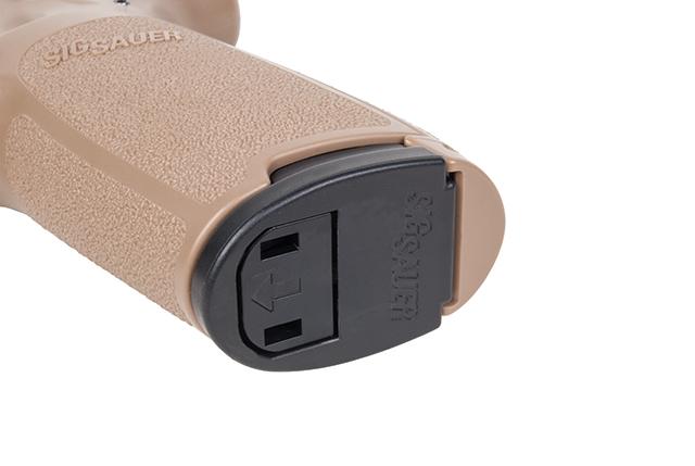 Authentisches Gewicht, Balance und Handling - die hochwertige Replica der Dienstpistole der US-Streitkräfte lässt keine Wünsche offen. Der Nachbau aus dem Hause Sig Sauer besteht aus hochwertigem Kunststoff sowie einem Metallschlitten und verfügt über ein innovatives 20 Schuss RPM Ketten-Magazin, welches gleichzeitig mit der Co2-Kapsel im Griffstück Platz findet. Der Anstich der Kapsel erfolgt durch eine Hebelmechanik denkbar einfach ohne weiteres Werkzeug. Das Modell bietet zusätzlich eine integrierte Picatinny-Schiene, eine 3-Punkt-Visierung und eine beidhändige Sicherung. Das starke Blow-Back-System vermittelt ein realistisches Schießerlebnis und macht die Replica zu einem idealen Trainigspartner. System: Co2 Blow Back Kaliber: 4,5 mm (.177) Magazinkapazität: 20 Schuss Gewicht: 972 g Gesamtlänge: 204 mm Energie: max. 120 m/s Luftdruckwaffen (Luftpistolen und Luftgewehre unter 7,5 Joule) müssen eine -F- Kennzeichnung im Fünfeck haben. Der Erwerb, Besitz und Transport der Waffen ist Volljährigen ohne Waffenschein erlaubt. Sie unterliegen jedoch dem Führverbot (§42 a WaffG).