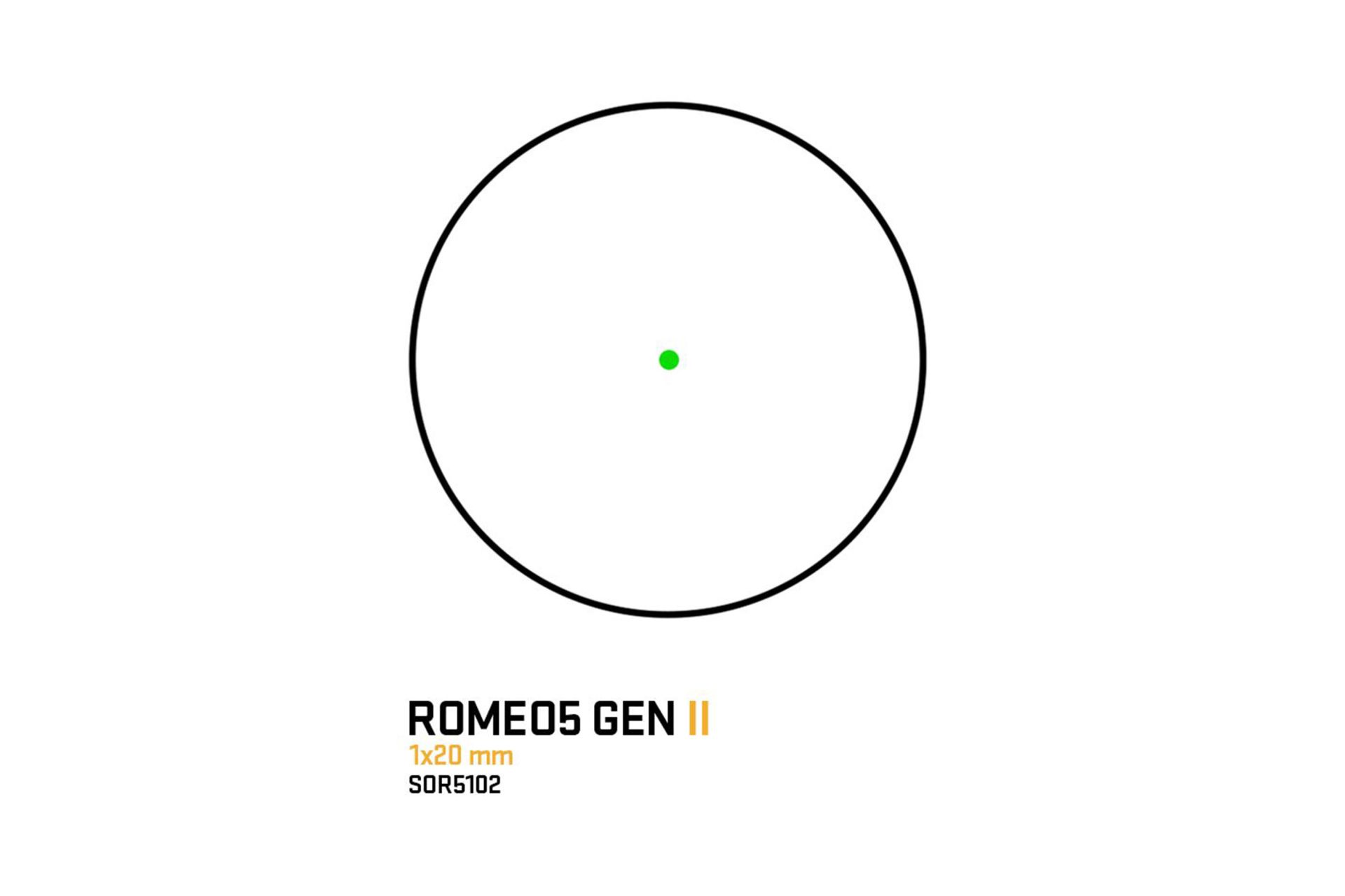 Die nächste Generation der meistverkauften ROMEO5-Serie von SIG SAUER ELECTRO-OPTICS kommt in einem neuen, mutigen Look. Das ROMEO5 GEN II bietet eine langlebige Ziellösung mit einem klaren 2-MOA-Rotpunkt, der von einer CR2032-Batterie gespeist wird, die schnell ausgetauscht werden kann. In Verbindung mit der bewegungsaktivierten MOTAC-Technologie von SIG SAUER bietet das ROMEO5 GEN II bei normaler Nutzung eine Laufzeit von 40.000 Stunden. Mit den oben montierten, beidhändig nutzbaren Bedienelementen, die 10 Tageslicht- und 2 Nachtsichteinstellungen bieten, können Sie schnell und intuitiv die optimale Einstellung für Ihre Umgebung finden. Das ROMEO5 GEN II hält einigen der härtesten Bedingungen stand, während die austauschbare I-BEAM-Halterung die Situationswahrnehmung maximiert. Abnehmbare, neu entwickelte I-BEAM-Montage für Picatinny-Schienen Unbegrenzter Augenabstand zum Erfassen des Zielpunktes unabhängig von der Position des Auges 40.000 Stunden Laufzeit mit CR2032-Batterie MOTAC™ - Leuchteinheit mit Bewegungssensor Beleuchtungssteuerung an der Oberseite für beidhändige Bedienung Parallaxefrei High-Performance Legierung Ultraleichtes Aluminiumgehäuse Wasserdicht (IPX-7) und beschlagfrei Vergrößerung: 1 fach Absehen: Red Dot Montage: Enthalten (22 mm) Farbe: Schwarz Material: Aluminium, Glas Red Dot Größe: 2 MOA Beleuchtungseinstellung: 10 Tag | 2 Nacht Objektiv Durchmesser: 20 mm Augenabstand: Unbegrenzt Höhenverstellbereich: 100 MOA Seitenverstellbereich: 100 MOA Gewicht: 155 g Maße: 70 x 40 x 62 mm