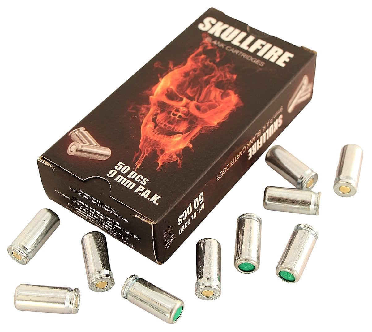 Produktinformationen "Skullfire 9mm P.A.K. Stahlhülse Pistolenkartuschen"