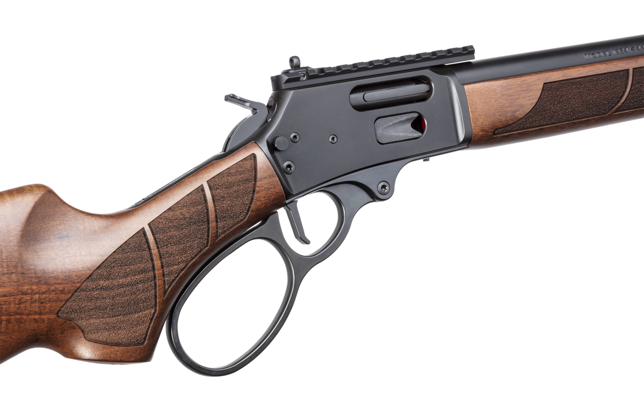 Er ist zuverlässig, robust gebaut und verfügt über traditionelle Details. Der Lauf hat ein Armornite schwarzes Finish und der Walnussschaft besitzt strukturierte Griffschalen.