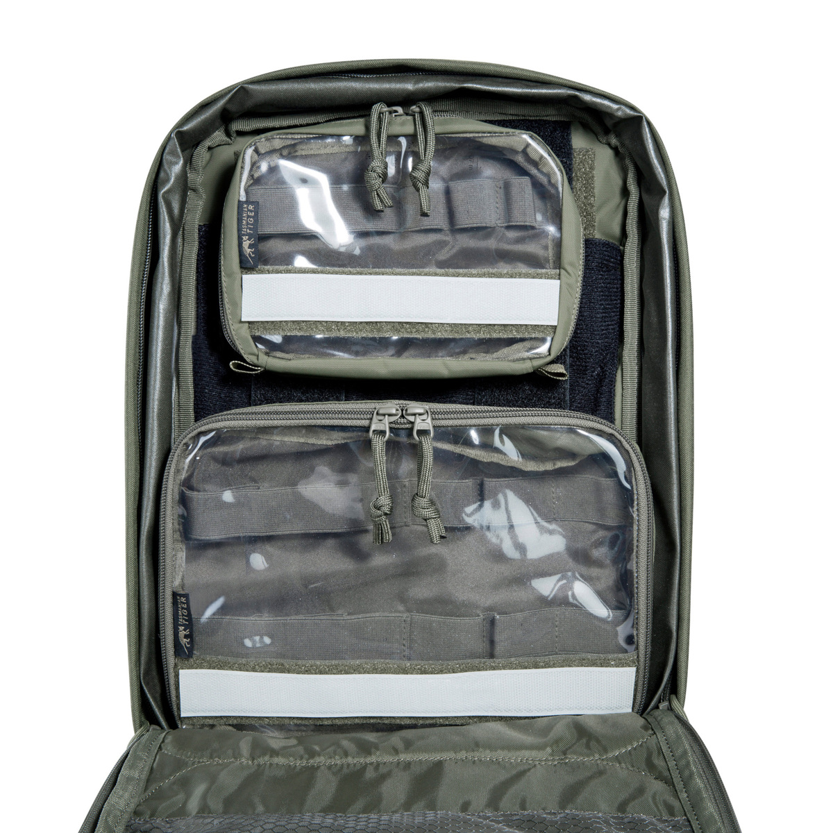 3 aufgesetzte Reißverschluss-Fronttaschen, mit Flauschklett ausgeschlagen