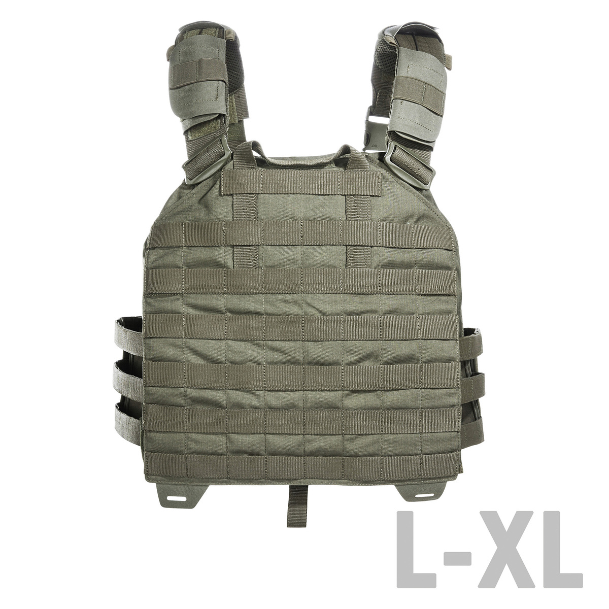 Die Größe 1 entspricht S/M und eignet sich für SAPI-Platten (30 x 25 cm). Die Größe 2 entspricht L/XL und eignet sich für SAPI-Platten von 30 x 25 cm bis 34 x 33 cm. Der Plattenträger besitzt ein flexibles Abwurfsystem und ist für schnelles Anziehen mit einer SR-Schließe versehen, die rechts oder links montiert werden kann.