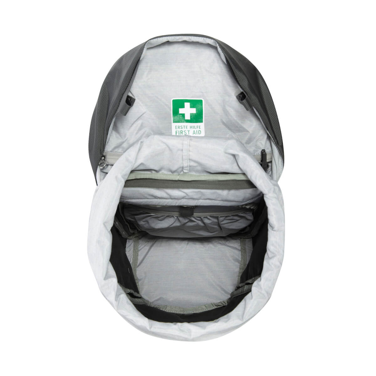 Für einen übersichtlichen Zugriff auf deine Ausrüstung im Hauptfach kannst du den Rucksack mit einem Rundum-Reißverschluss auf der Rückseite komplett aufziehen. Das ist zudem praktisch, weil du das Tragesystem nicht auf die Erde oder auf Wintertouren in den Schnee legen musst.