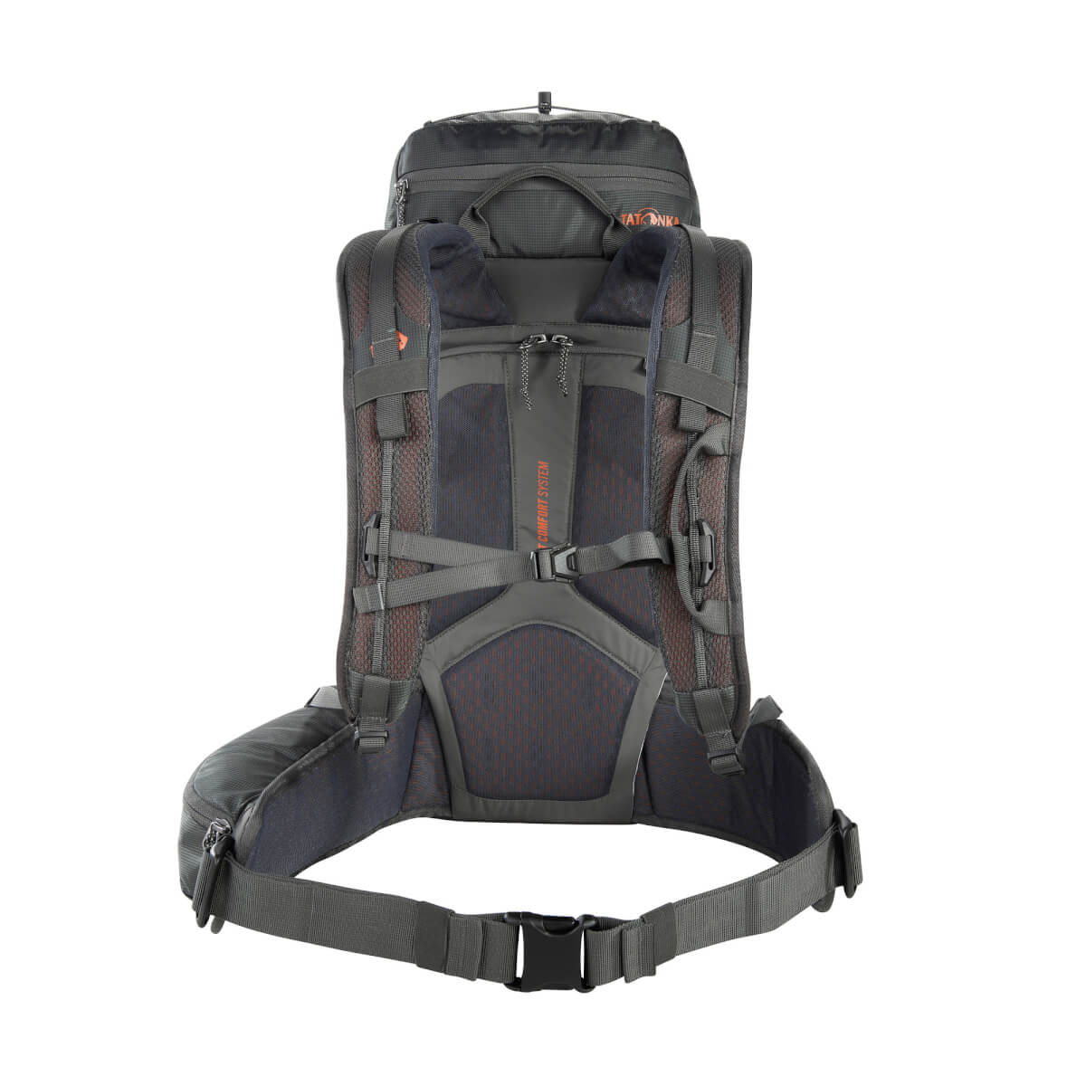 Großer Wanderrucksack mit Kontaktrücken-Tragesystem für Bergwanderungen und Klettersteigtouren: Tatonka Norix 34 Dieser große Wanderrucksack ist ein vielseitiger Wanderpartner, der sich dank seines Volumens von 34 Litern auch für Hüttentouren anbietet und der mit praktischen Features für Klettersteigtouren aufwartet. Sein Vent Comfort-Tragesystem liegt eng am Rücken an, so dass der Rucksack auch beim Kraxeln in anspruchsvollem Gelände nicht hin und her wackelt. Die sehr gute Lastkontrolle ist auch auf dem Klettersteig ein goßer Vorteil. Die ergonomische Rückenpolsterung bietet dabei mit dem Belüftungskanal und dem luftdurchlässigem AirMesh-Bezug eine angenehme Luftzirkulation. Komplett aufziehbares Hauptfach und vielfältige Verstaumöglichkeiten Das Hauptfach des Wanderrucksacks lässt sich nicht nur von oben beladen, sondern auf der Rückseite auch komplett aufziehen. So kommst du schnell an die Ausrüstung, die du weiter unten im Rucksack verstaut hast. Außerdem kannst du die elastischen Front- und Seitentaschen, das Deckelfach sowie Materialschlaufen auf der Front und eine elastische Spinne auf dem Deckel zum Verstauen deiner Ausrüstung nutzen. Smarte Features für Klettersteig-Geher Du kannst den Hüftgurt des Norix 34 abnehmen, wenn du den Klettergurt anlegst. So kommen sich beide nicht ins Gehege. Die großen Materialschlaufen an Schulter- und Hüftgurt dienen dazu, die Karabiner des Klettersteigsets einzuhängen, wenn Passagen ohne Sicherung zu bewältigen sind.Der Norix 34 kommt inklusive einer im Bodenfach verstauten Regenhülle.• Vent Comfort-Tragesystem• Packsack mit Schneefang• Wanderstockhalterung• Lastkontrollriemen• Materialschlaufe auf dem Schultergurt• Höhenverstellbarer Brustgurt• Umgelenkter Hüftgurt-Zug• Abnehmbarer, gepolsterter Hüftgurt mit Materialschlaufe rechts und Reißverschlusstasche links• Seitenkompression mit feststellbarer Schnalle• Handgriff• Deckelfach mit Schlüsselhalterung• Elastische Zickzack-Schnürung auf dem Deckel• Trinksystemvorbereitung• Integrierte Regenhülle im Bodenfach• Seitentaschen aus elastischem Material• Materialschlaufen auf der Front• Elastische Einstecktasche auf der Front• Erste-Hilfe-Fach (ohne Inhalt)• PFC/PFAS-freie Imprägnierung• Helmhalterung• Fixiermöglichkeit am Boden• Große Reißverschlussöffnung ins Hauptfach auf der Rückseite