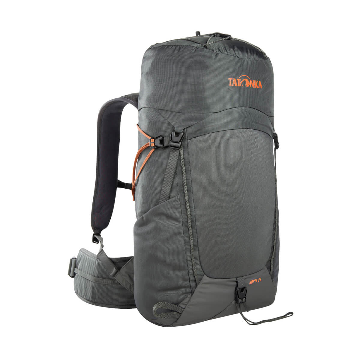 Wanderrucksack mit Kontaktrücken-Tragesystem für anspruchsvolle Bergtouren: Tatonka Norix 27Der Norix 27 von Tatonka besitzt 27 Liter Volumen im Hauptfach, außerdem kannst du Ausrüstung in den elastischen Front- und Seitentaschen und im Deckelfach verstauen. Auch Materialschlaufen auf der Front und eine elastische Spinne auf dem Deckel bieten praktische Befestigungsmöglichkeiten. Durch sein Vent Comfort-Tragesystem liegt der Norix 27 eng am Rücken an, das sorgt für eine sehr gute Lastkontrolle auf anspruchsvollen Berg- oder Klettersteigtouren. Die Rückenpolsterung bietet dabei mit dem Belüftungskanal und dem luftdurchlässigem AirMesh-Bezug eine angenehme Luftzirkulation.Zugriff ins Hauptfach von der RückseiteFür einen übersichtlichen Zugriff auf deine Ausrüstung im Hauptfach kannst du den Rucksack mit einem Rundum-Reißverschluss auf der Rückseite komplett aufziehen. Das ist zudem praktisch, weil du das Tragesystem nicht auf die Erde oder auf Wintertouren in den Schnee legen musst.Smarte Features für Klettersteig-TourenDie großen Materialschlaufen an Schulter- und Hüftgurt kannst du nutzen, um die Karabiner des Klettersteigsets einzuhängen, wenn du Passagen ohne Sicherung gehst. Außerdem kannst du den Hüftgurt abnehmen, wenn du den Klettergurt anlegst. So kommen sich beide nicht ins Gehege.• Vent Comfort-Tragesystem• Packsack mit Schneefang• Wanderstockhalterung• Lastkontrollriemen• Materialschlaufe auf dem Schultergurt• Höhenverstellbarer Brustgurt• Umgelenkter Hüftgurt-Zug• Abnehmbarer, gepolsterter Hüftgurt mit Materialschlaufe rechts und Reißverschlusstasche links• Seitenkompression mit feststellbarer Schnalle• Handgriff• Deckelfach mit Schlüsselhalterung• Elastische Zickzack-Schnürung auf dem Deckel• Trinksystemvorbereitung• Integrierte Regenhülle im Bodenfach• Seitentaschen aus elastischem Material• Materialschlaufen auf der Front• Elastische Einstecktasche auf der Front• Erste-Hilfe-Fach (ohne Inhalt)• PFC/PFAS-freie Imprägnierung• Helmhalterung• Fixiermöglichkeit am Boden• Große Reißverschlussöffnung ins Hauptfach auf der RückseiteDetailsAbmessungen: 58 x 25 x 15 cmPackmass: 0 x 0 x 0 cmVolumen: 27 lGewicht: 1,1 kgRückensystem: Vent Comfort-System Material 1: Microrip 2.1Material 2: 210 HD Nylon FDMaterial Boden: 210 HD Nylon FD MICRORIP 2.1Zusammensetzung 100% Polyamid Dank regelmäßig eingewebter stärkerer Fäden zeigt dieses sehr leichte Material eine feine Karo-Struktur, gleichzeitig ergibt sich eine hohe Reißfestigkeit (Ripstop). Die PU-Beschichtung auf der Innenseite sorgt für Wasserdichtigkeit. Das Material ist PFC/PFAS-frei ausgerüstet. Es wird für Rucksäcke verwendet. 210 HD Nylon FDZusammensetzung 100% Polyamid Das leichte, PFC/PFAS-frei ausgerüstete Polyamidgewebe mit der Garnstärke 210 Denier ist durch dreifache PU-Beschichtung wasserdicht. Das verwendete FD-Garn verleiht dem Material eine matte Oberfläche. Es wird zum Beispiel bei Wanderrucksäcken eingesetzt.