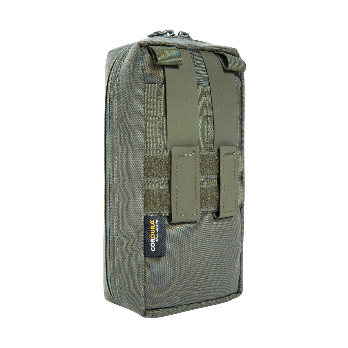 Die Tasche ist aus robustem Cordura gefertigt und kann auf dem modularen Befestigungssystem der Tatonka-Rucksäcke eingefädelt werden. Sie ist auch auf Molle-Systemen verwendbar.