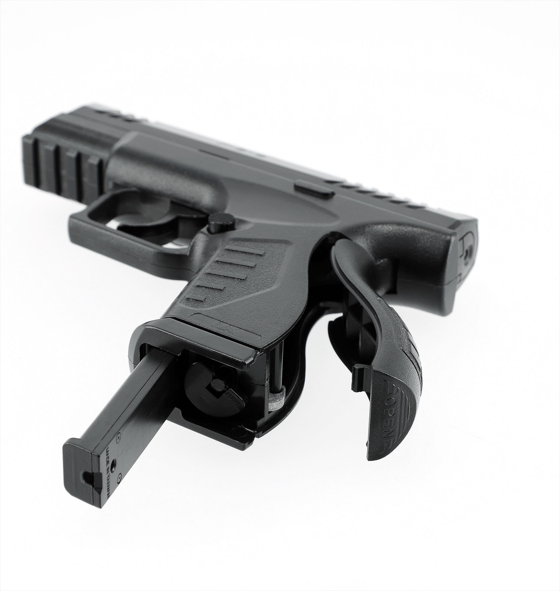 Diese handliche und kompakte CO₂-Pistole ist die perfekte Einstiegswaffe für Freizeitschützen. Die Handhabung ist einfach und unkompliziert: Zum Einsetzen der CO₂-Kapsel wird der Griffrücken durch einen Hebel geöffnet. Nach dem Einsetzen des gefüllten Drop-Free Magazins und dem Entsichern der Waffe kann die Schussabgabe mit voller Energie erfolgen.