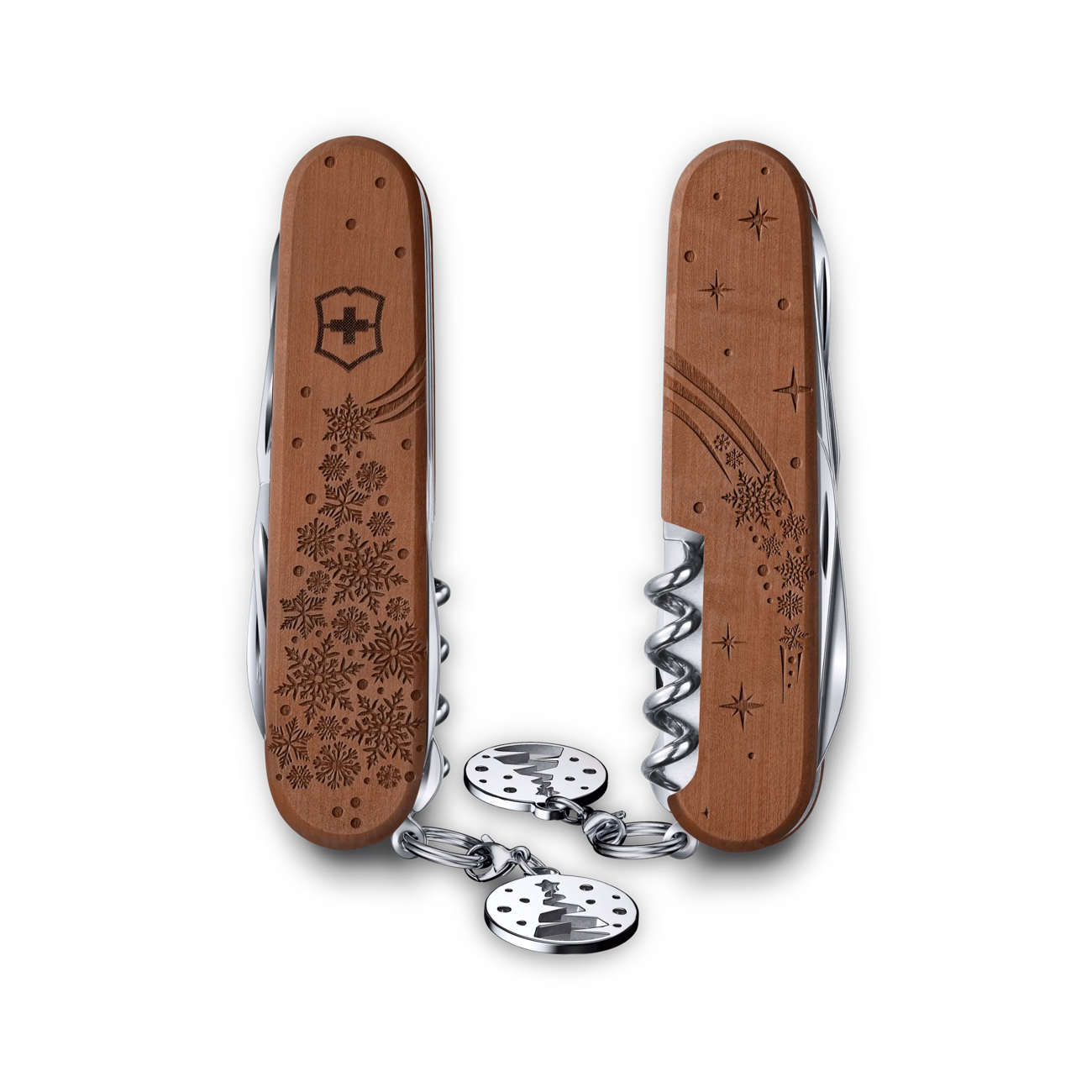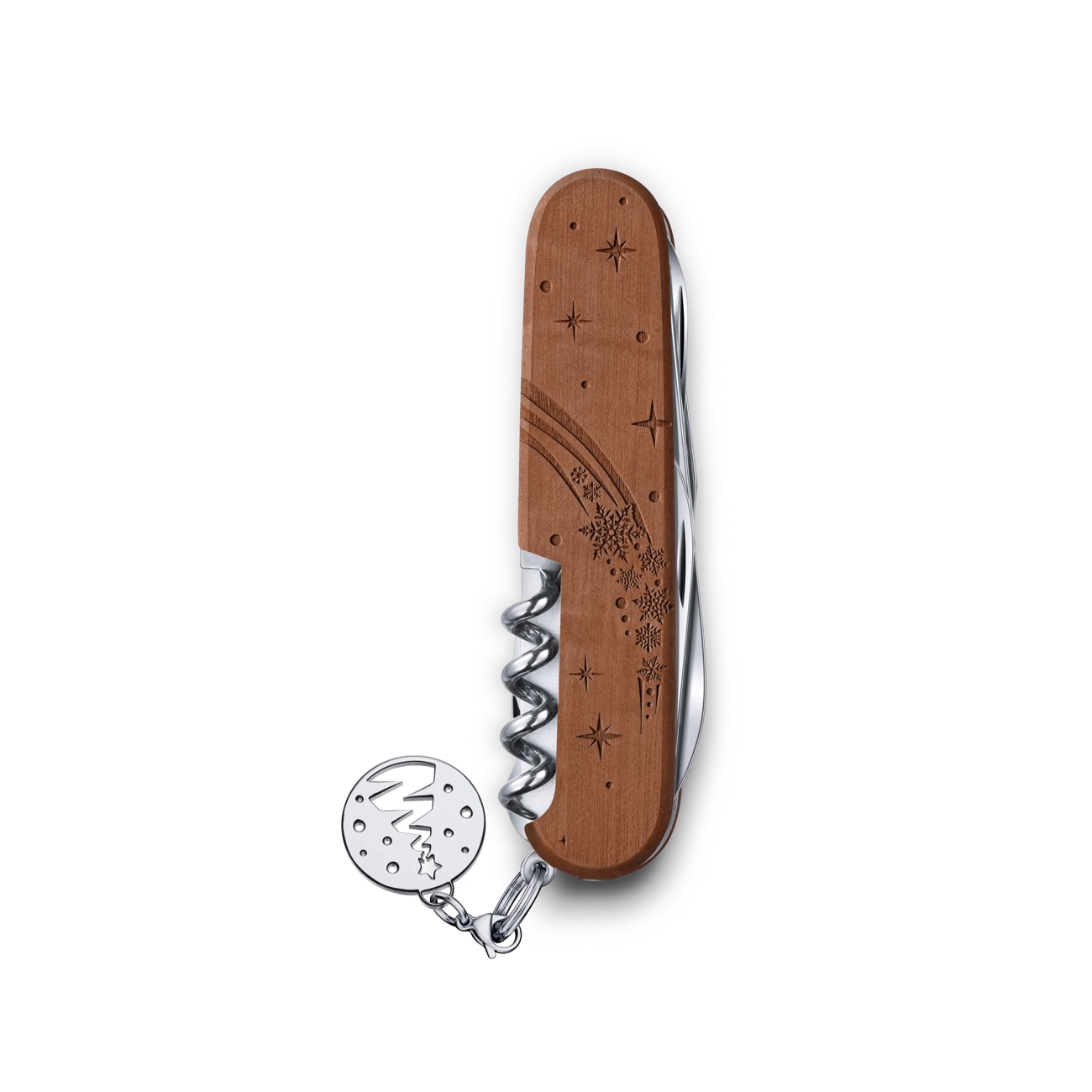 Das Winter Magic 2025 ist ein Geschenk mit unverwechselbarer DNA, ein Sammlerstück, das durch seine Leistungsfähigkeit überzeugt. Basierend auf den vielfältigen Funktionen des Climber Taschenmessers vereint es mühelose Technik mit herausragender Kunstfertigkeit. Das aufwendig gearbeitete Laserdesign auf Birnbaumholzschalen und der abnehmbare, passende Anhänger unterstreichen seine Originalität.