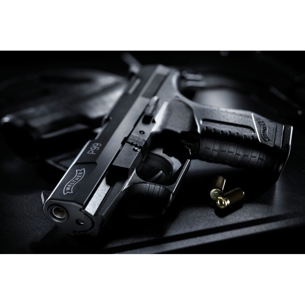 Ihr berühmtester Fan ist Geheimagent Ihrer Majestät und verlässt sich bei seinen Filmabenteuern stets auf "seine" Walther P99. Polizei und Militär weltweit verwenden die Walther P99 - eine der modernsten und innovativsten Faustfeuerwaffen der heutigen Zeit. Die Walther P99 verfügt über ein robustes Polymer-Griffstück und ein 15-schüssiges zweireihiges Magazin. Höchster Bedienkomfort sowie größtmögliche Sicherheit durch den Entspanndrücker und trotzdem schnelle Feuerbereitschaft faszinieren die Waffenkenner weltweit.