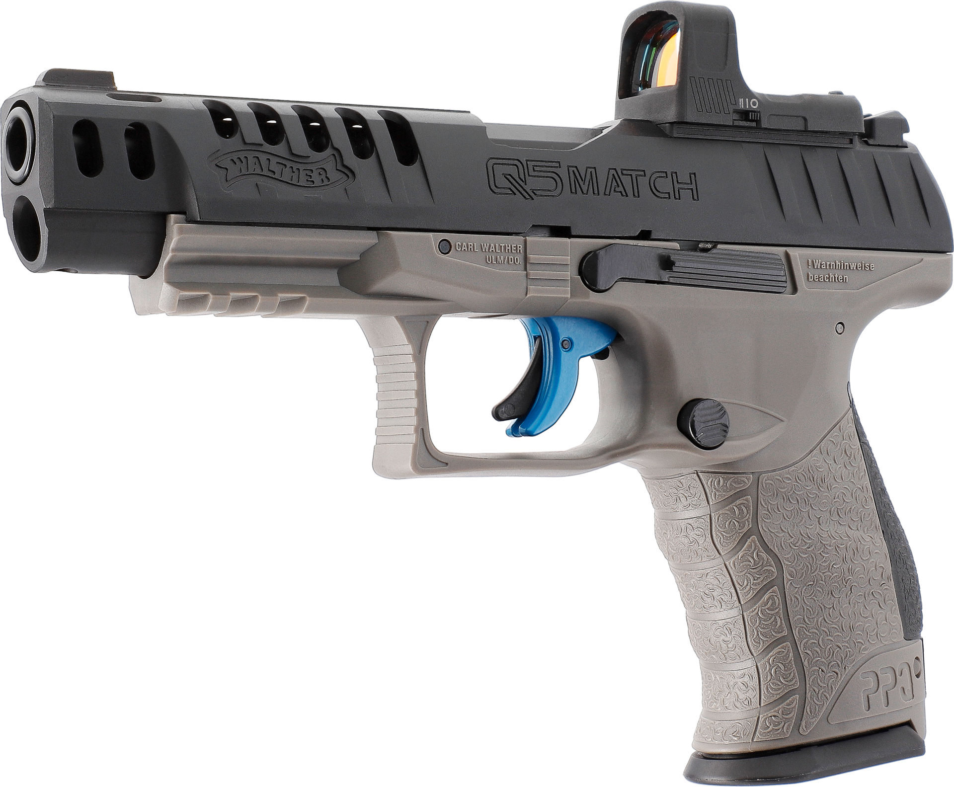 Die Walther Q5 Match ist eine exzellente Wettkampfpistole mit sportlichen Ambitionen. Aufgrund der Lauflänge, langen Visierlinie, Leuchtpunktvisier-Aufnahme und der optimalen Abzugscharakteristik eignet sie sich für dynamische Disziplinen ebenso wie als Verteidigungswaffe.